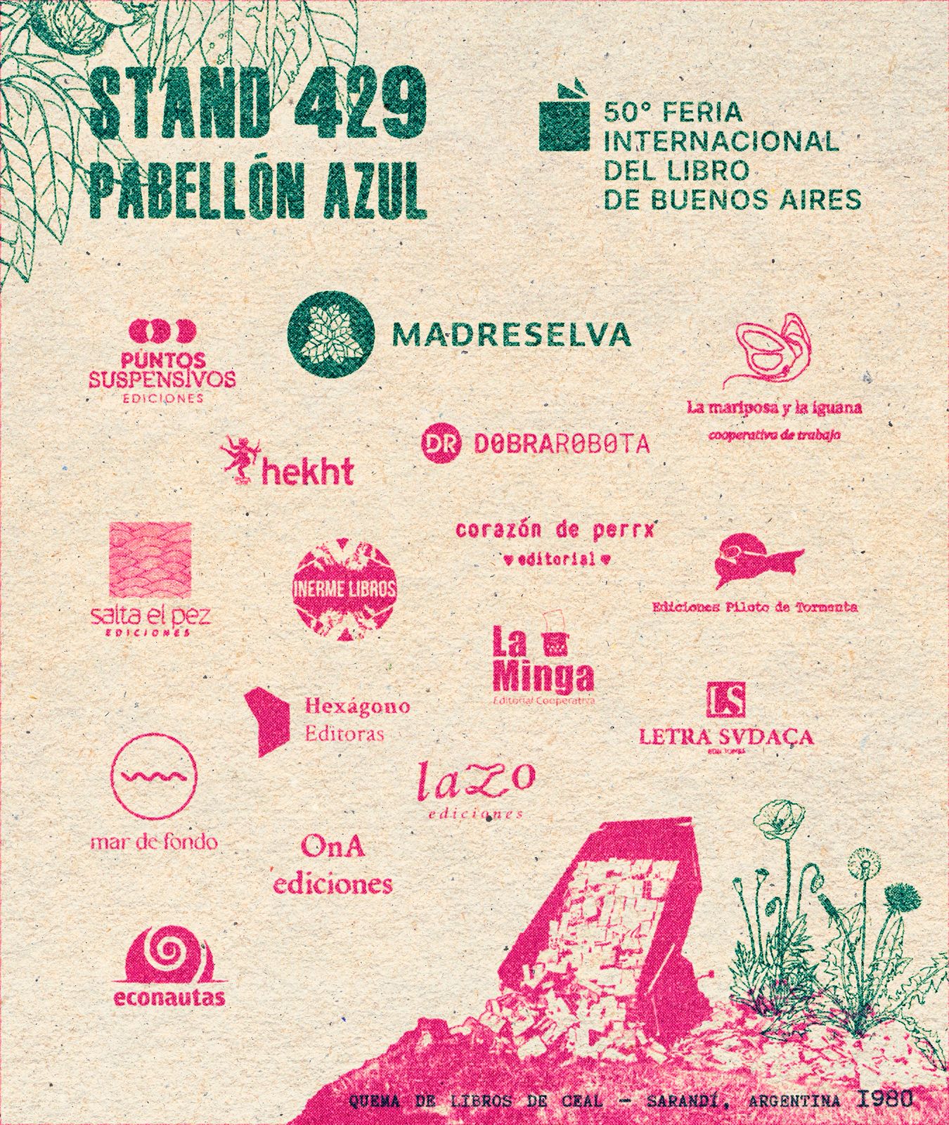 A partir del jueves 23 de abril, y hasta el 11 de mayo, el pabellón azul recibirá a quince editoriales nacionales que volverán a unir fuerzas para llevar los libros más irreverentes al evento editorial y literario más convocante de habla hispana.